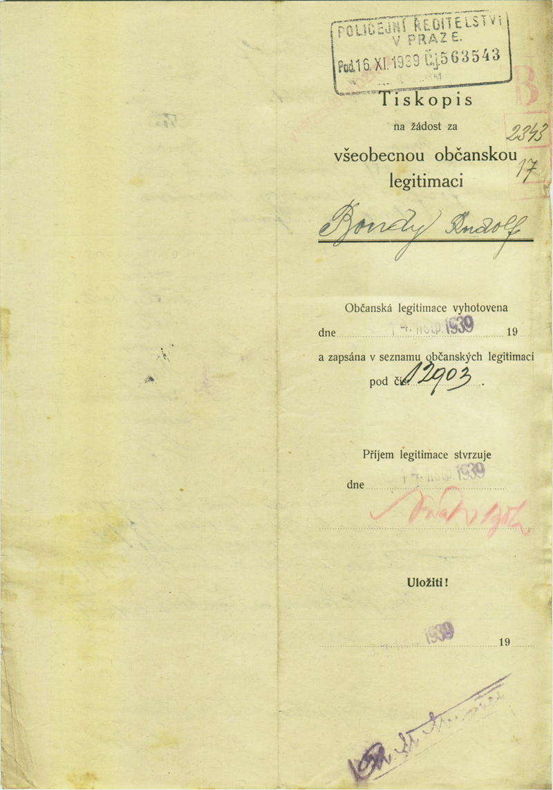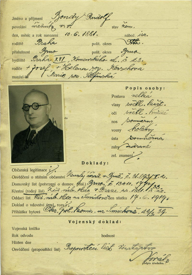 Bondy Rudolf: Žádost o vydání občanské legitimace