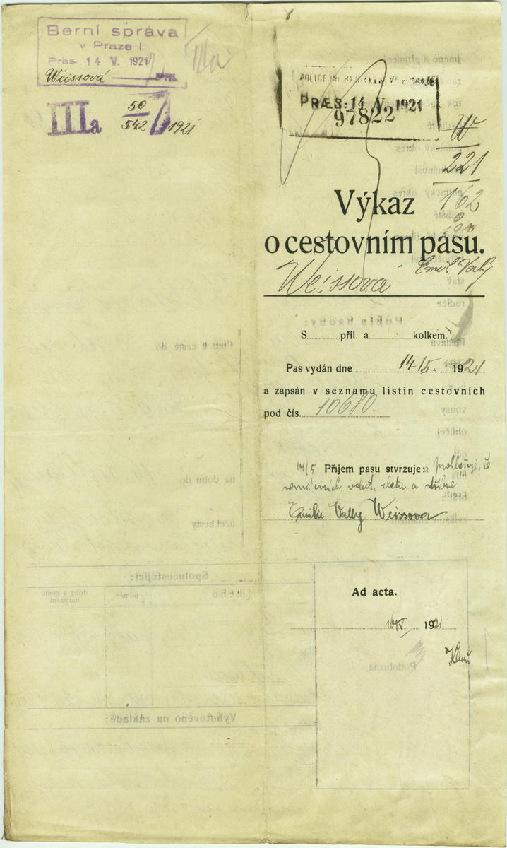 Ehrlichová Emilie: Žádost o vydání cestovního pasu