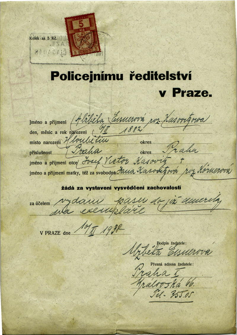 National archives Prague > Police Directorate Prague > 1931-1940 > E > Eisnerová Elisabeta