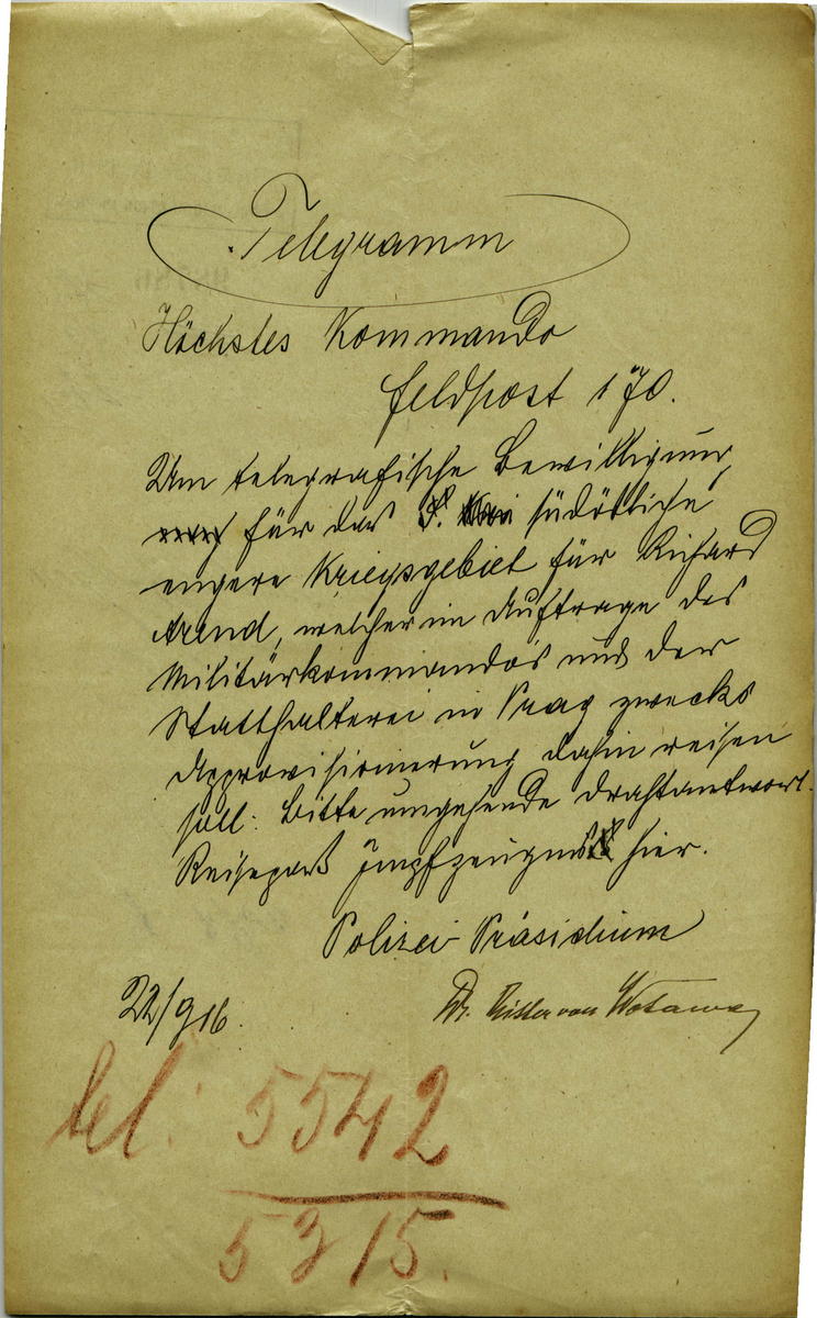 Arend Richard: Žádost o povoleni vstupu do válečné zóny