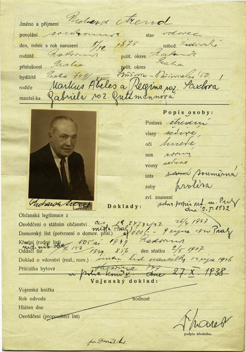 National archives Prague > Police Directorate Prague > 1931-1940 > A > Arend Richard