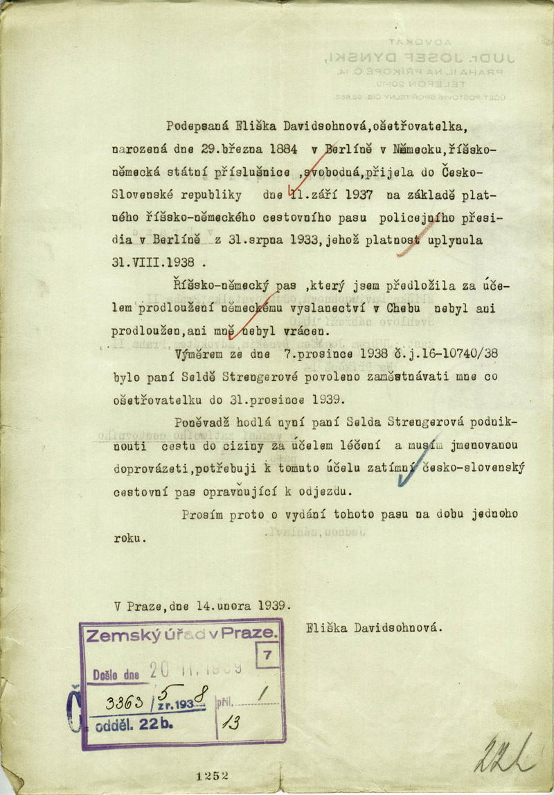 Davidsohnová Elsa: Žádost o vydání cestovního pasu