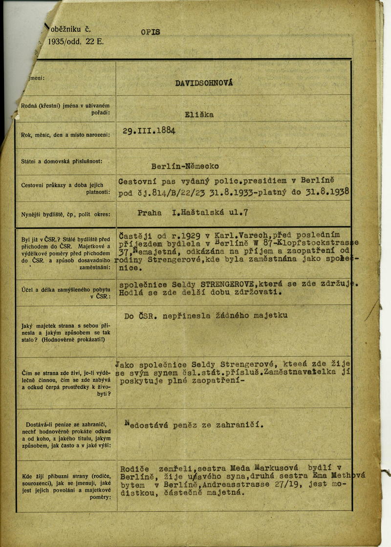 National archives Prague > Police Directorate Prague > 1941-1950 > D > Davidsohnová Elsa