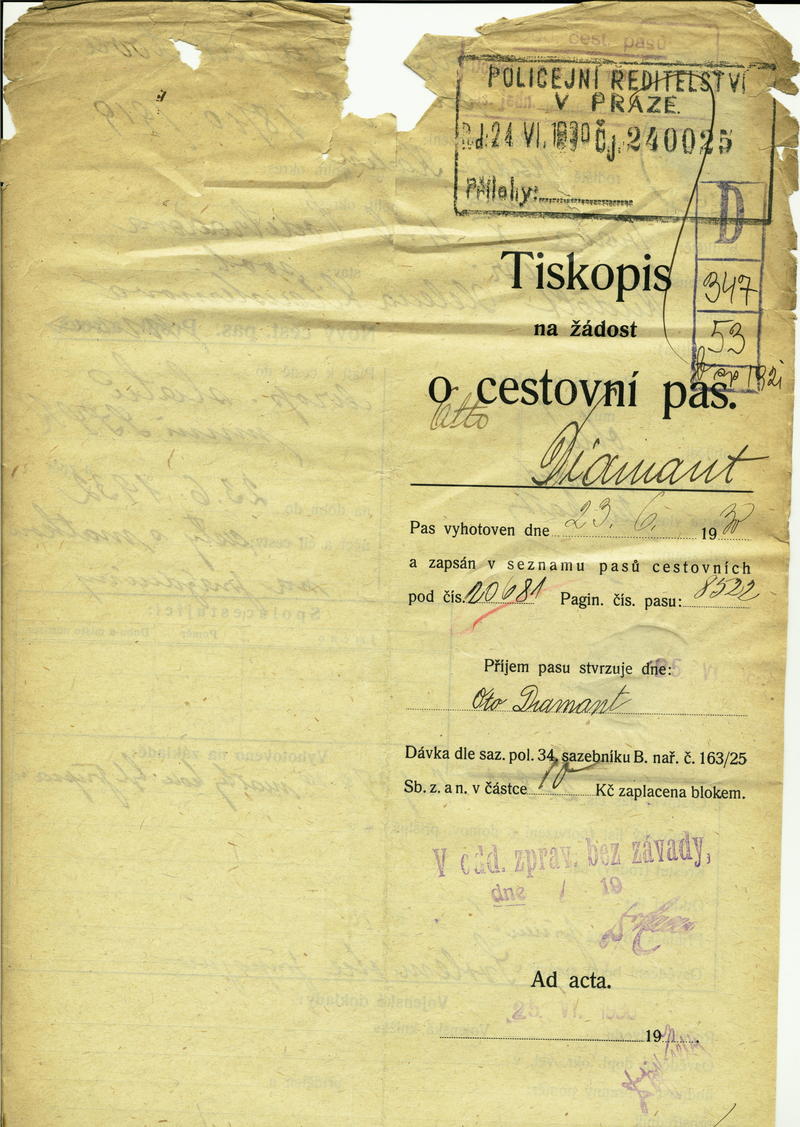 National archives Prague > Police Directorate Prague > 1941-1950 > D > Diamant Otto