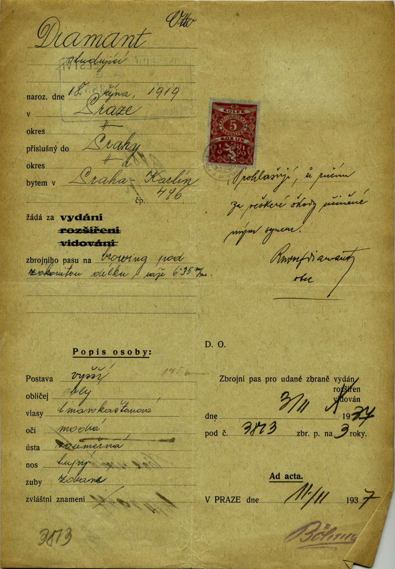Diamant Otto: Žádost o vydání zbrojního pasu