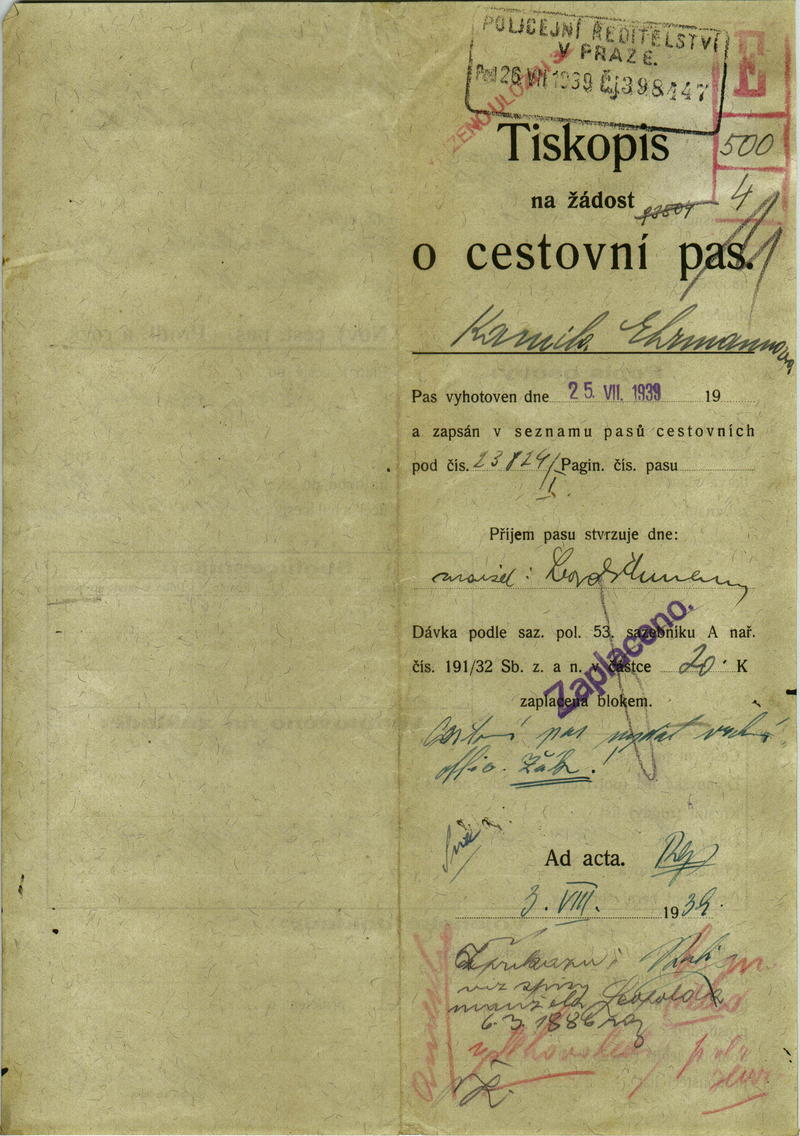 Ehrmannová Kamila: Žádost o rozšíření cestovního pasu