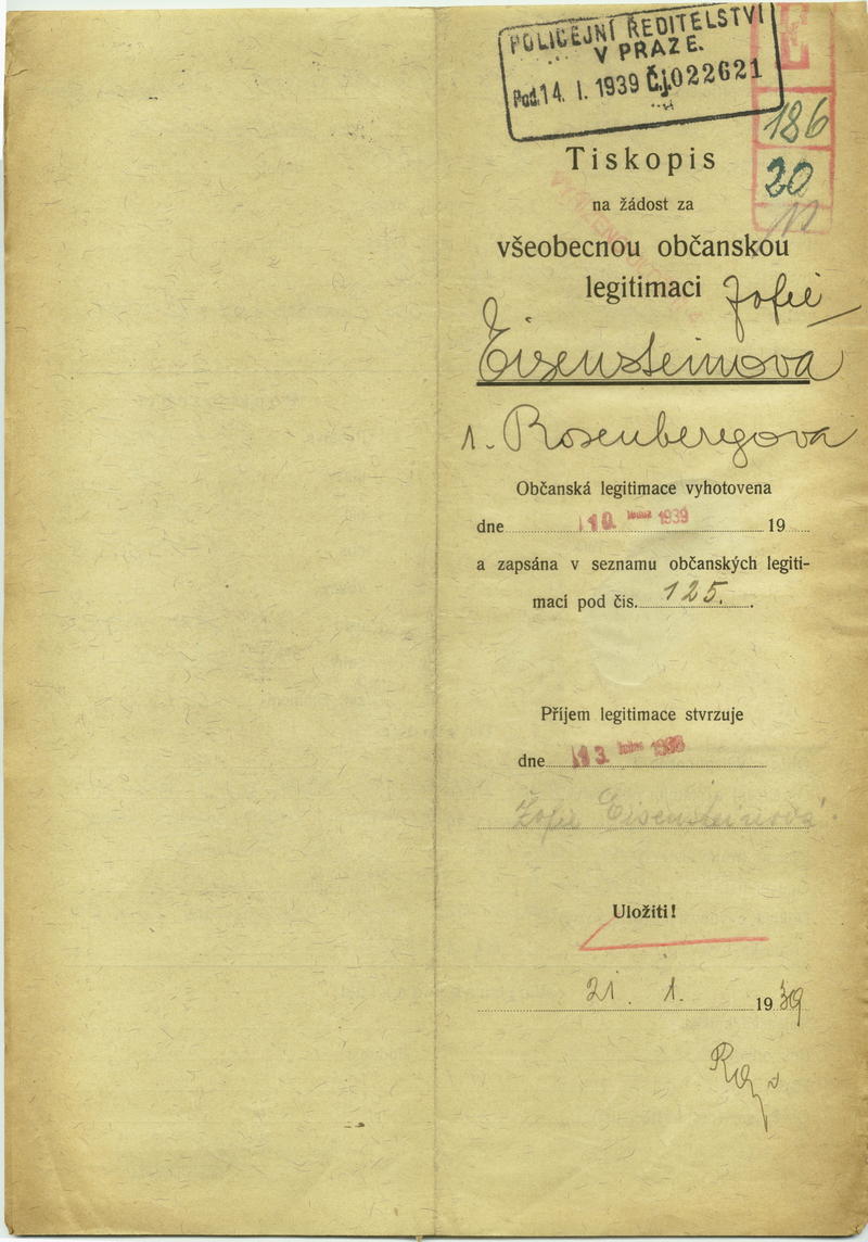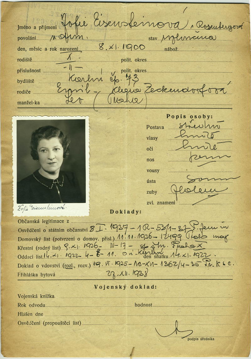 Eisensteinová Žofie: Žádost o vydání občanské legitimace