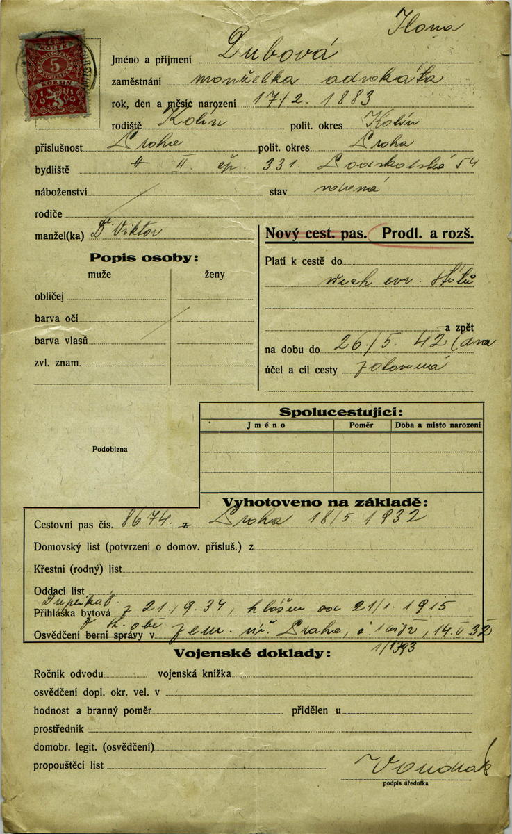 Dubová Marie Ilona: Žádost o prodloužení a rozšíření cestovního pasu