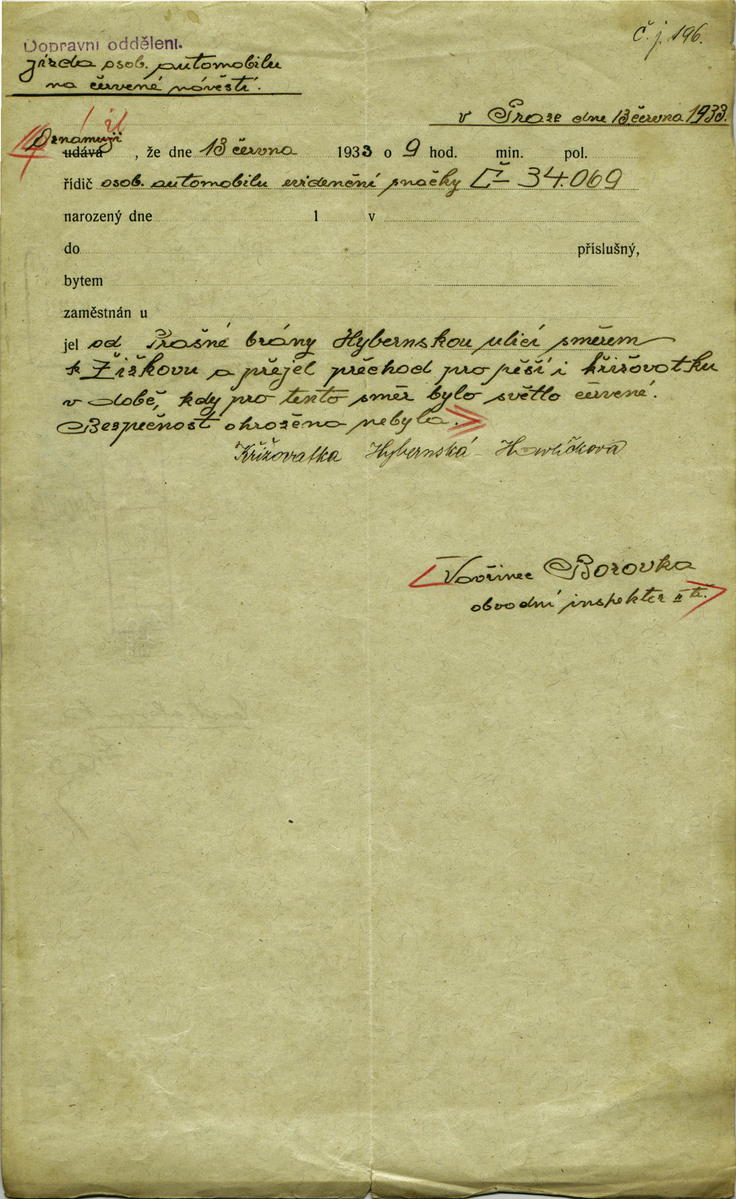 Arnstein Emil: Protokol o přestupku