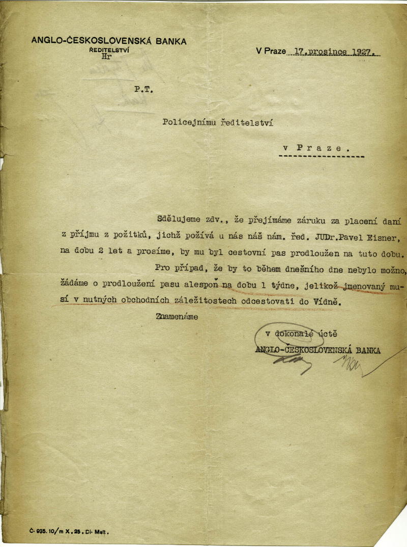Eisner Paul: Daňové potvrzení