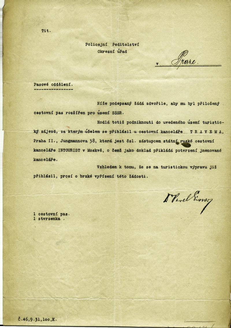 Eisner Paul: Žádost o rozšíření cestovního pasu