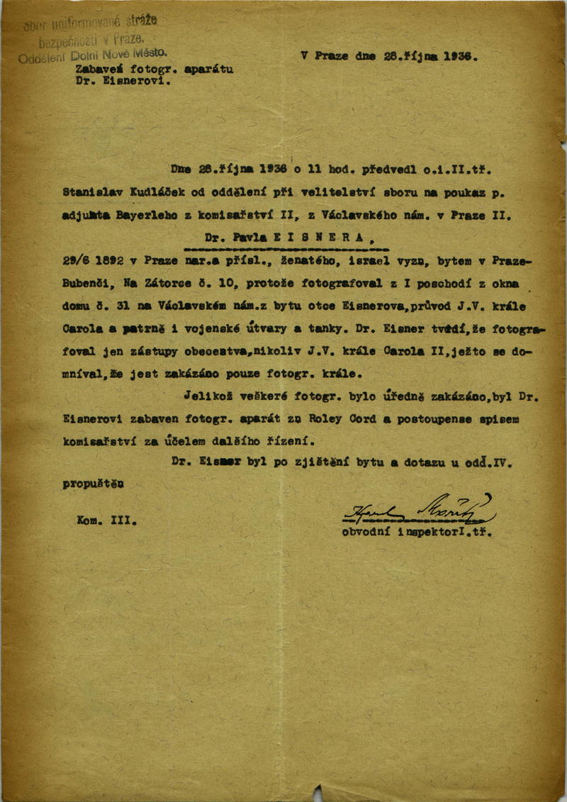 Eisner Paul: Zpráva o přestupku