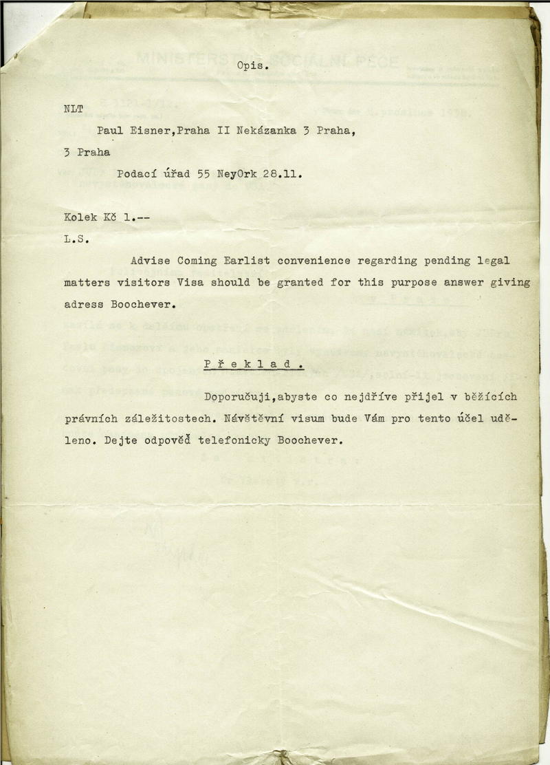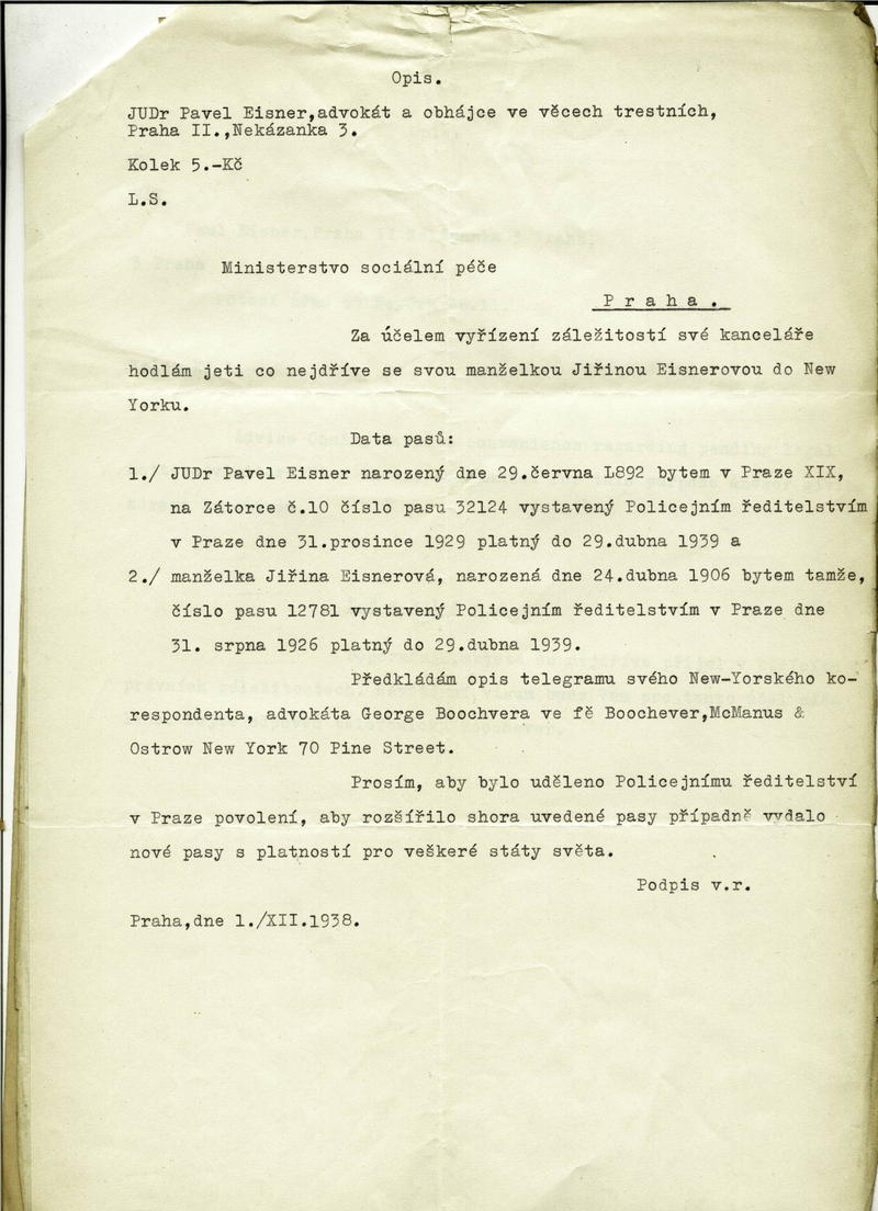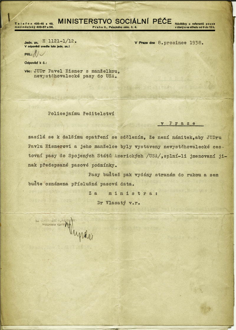 Eisner Paul: Souhlas s vydáním cestovního pasu