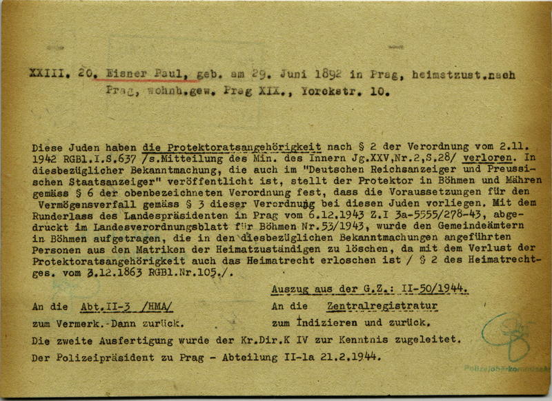Eisner Paul: Ztráta protektorátní příslušnosti
