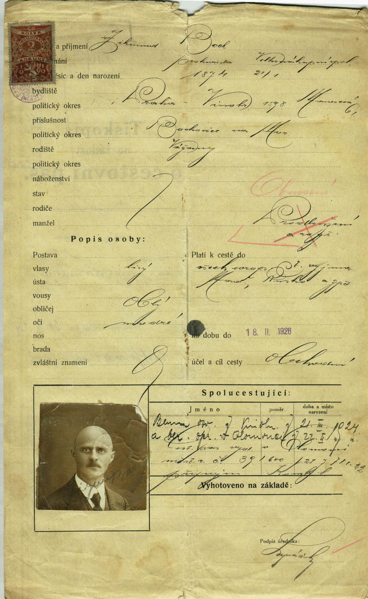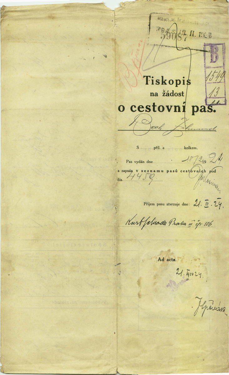 Bock Zikmund: Žádost o vydání cestovního pasu