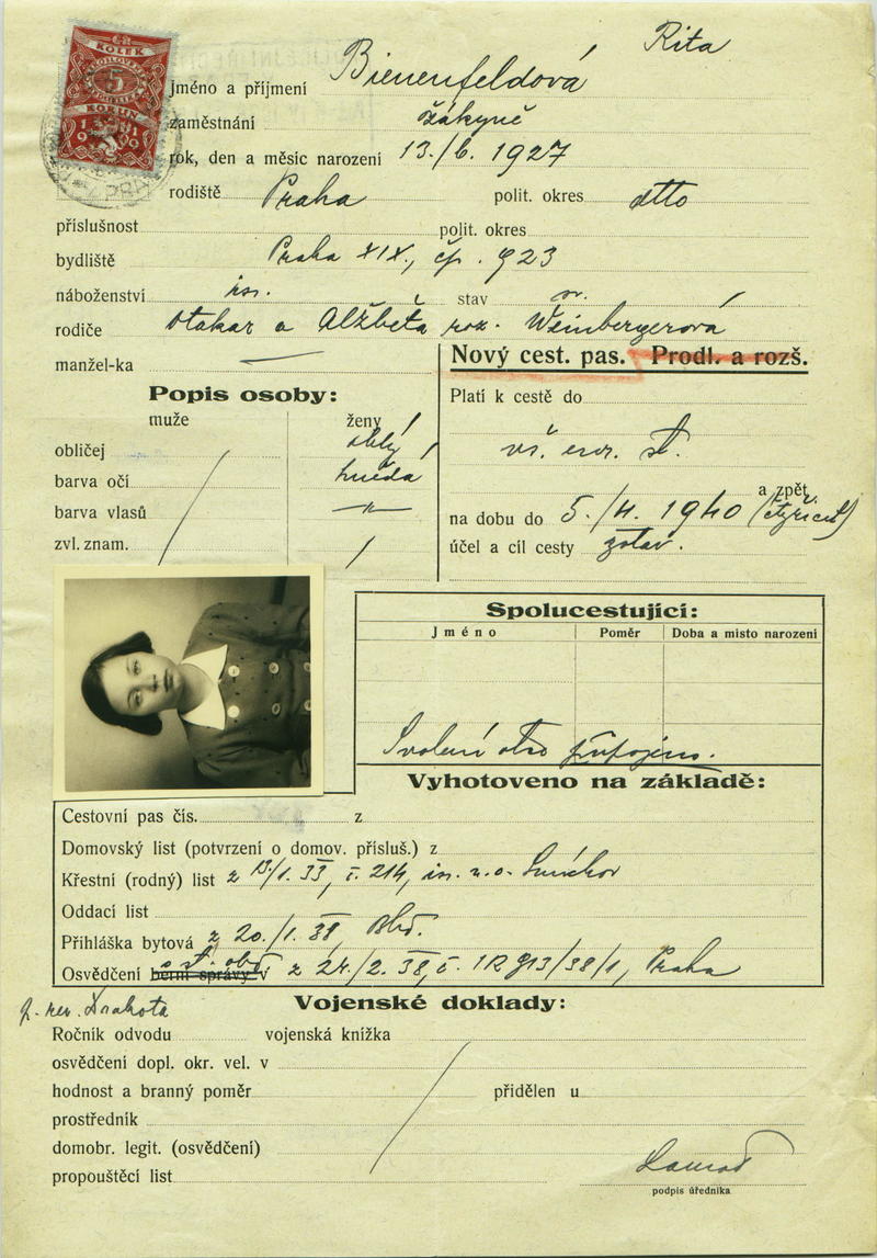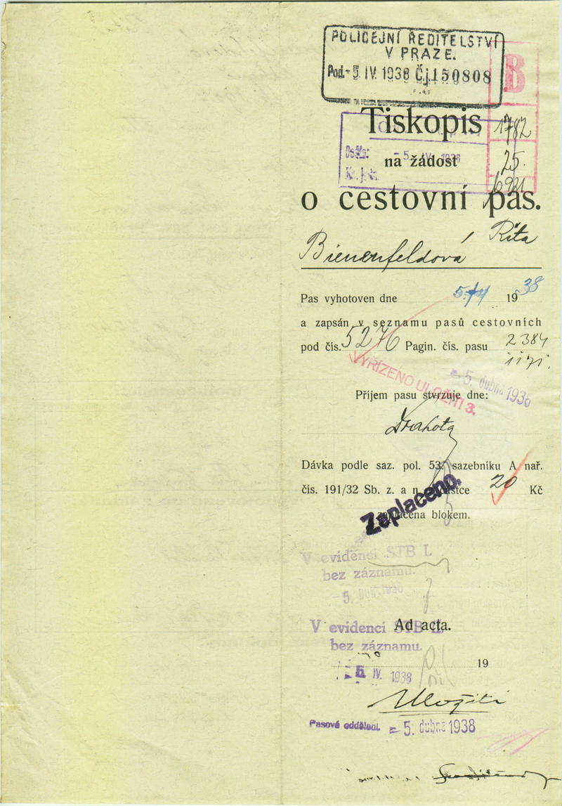 Bienenfeldová Rita Ivona: Žádost o vydání cestovního pasu