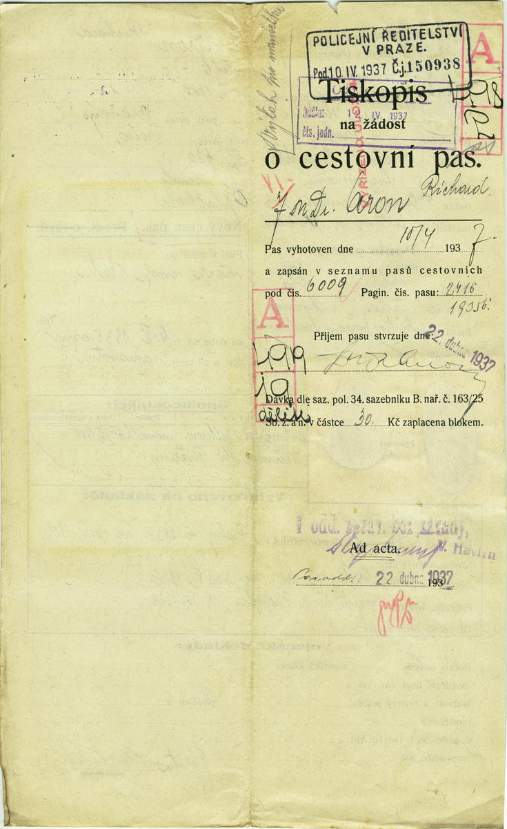 National archives Prague > Police Directorate Prague > 1931-1940 > A > Aron Richard