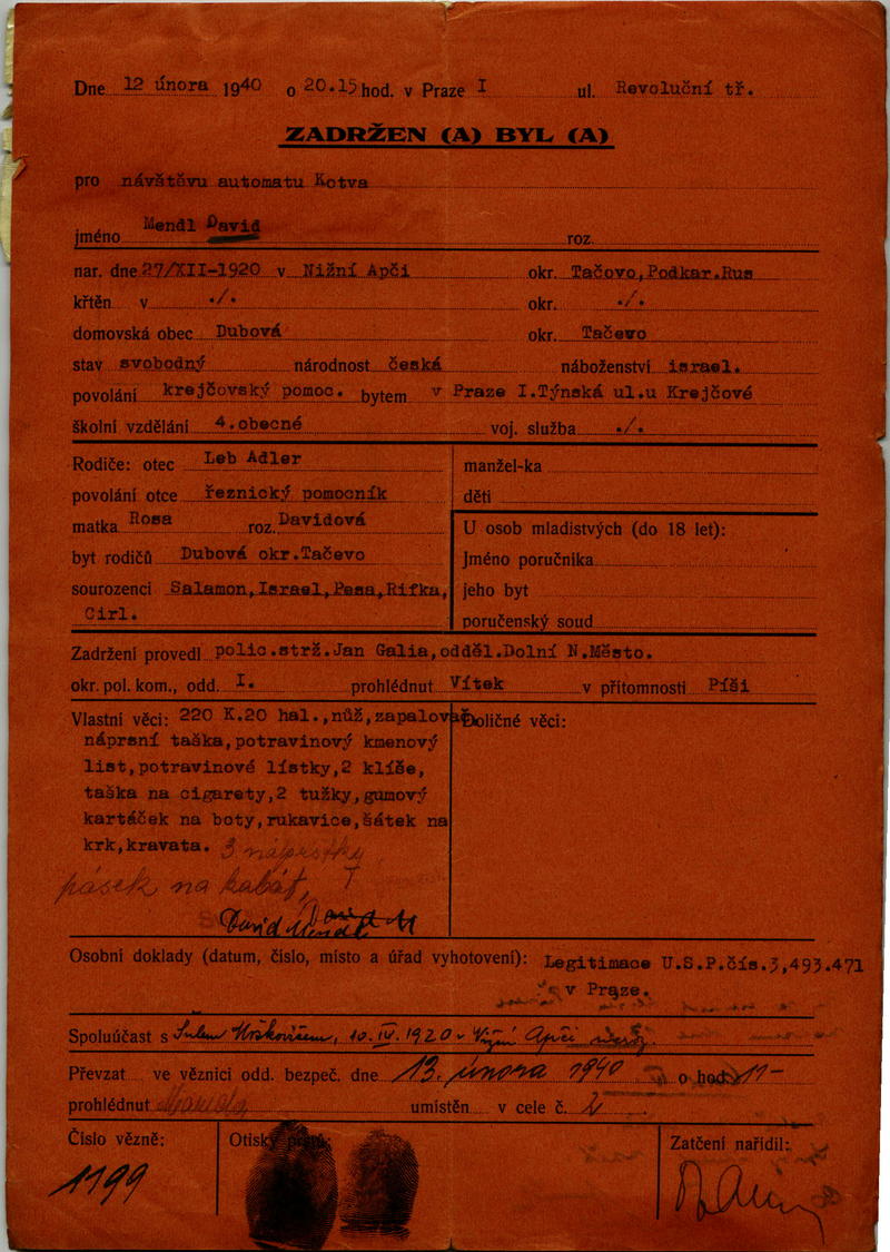 David Mendel: Protokol o zadržení