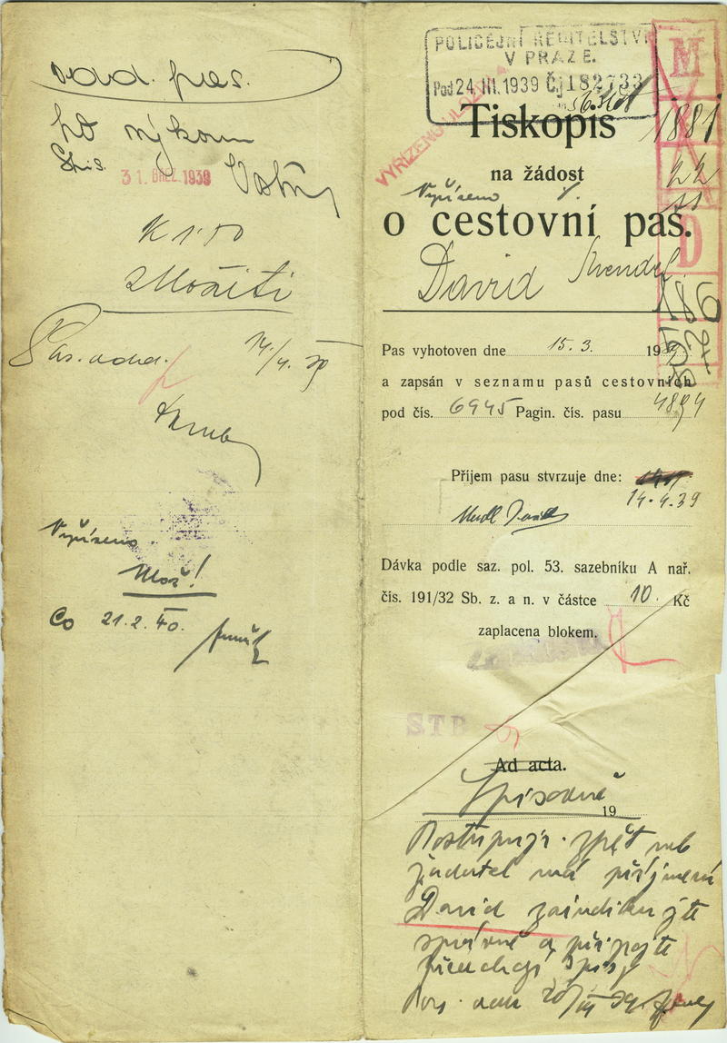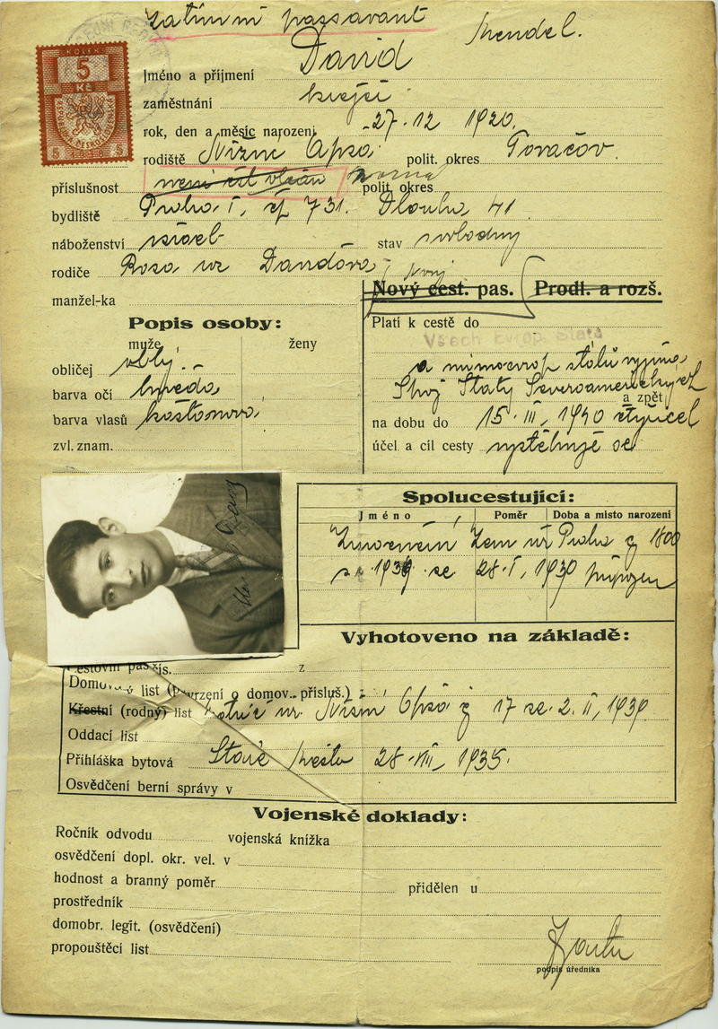 David Mendel: Žádost o vydání prozatímního cestovního pasu