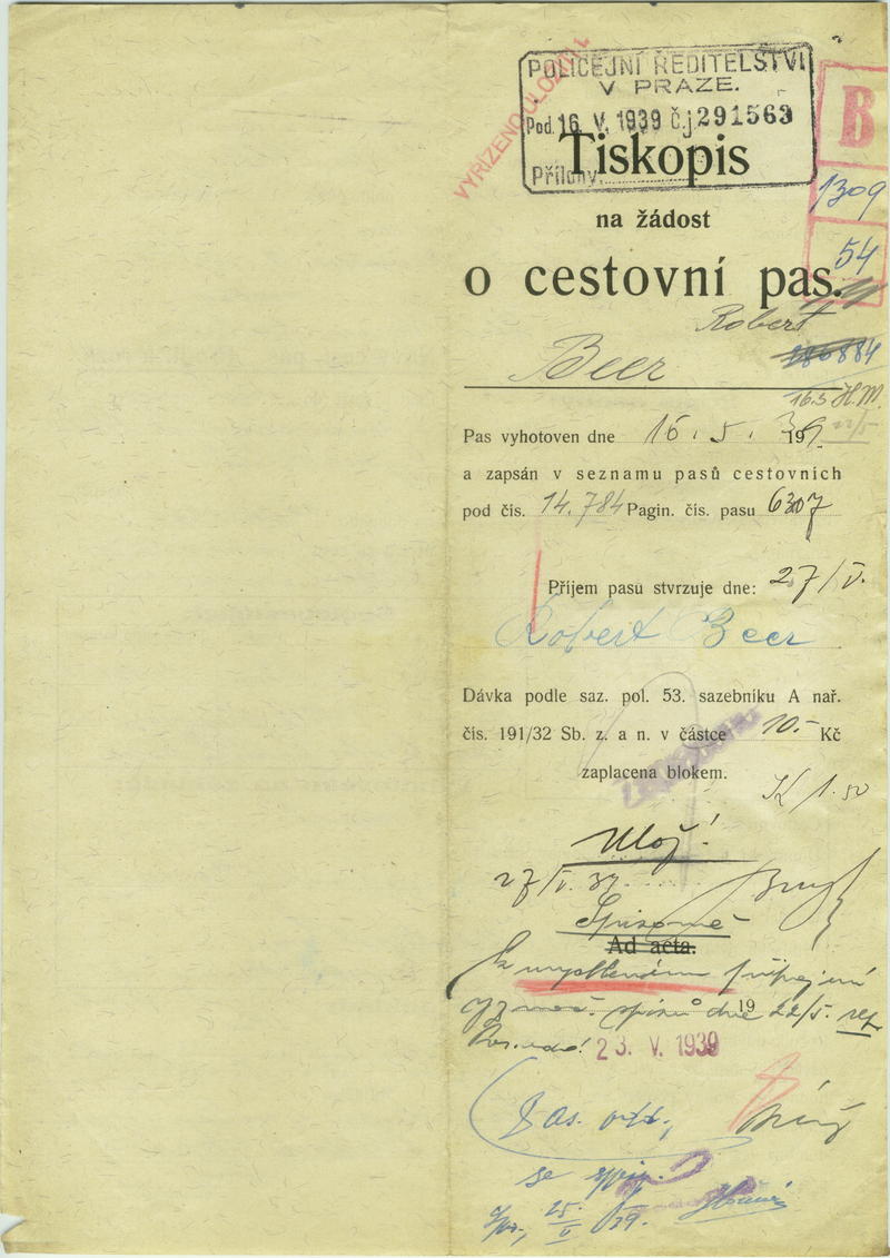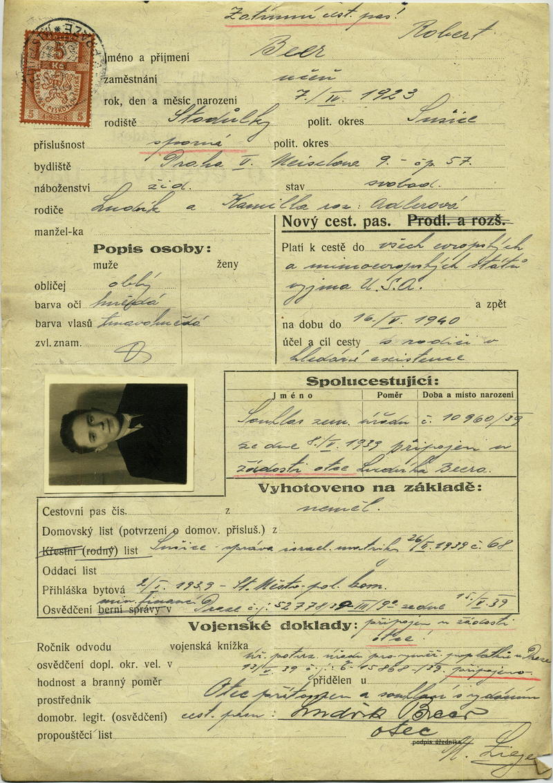 Beer Robert: Žádost o vydání prozatímního cestovního pasu