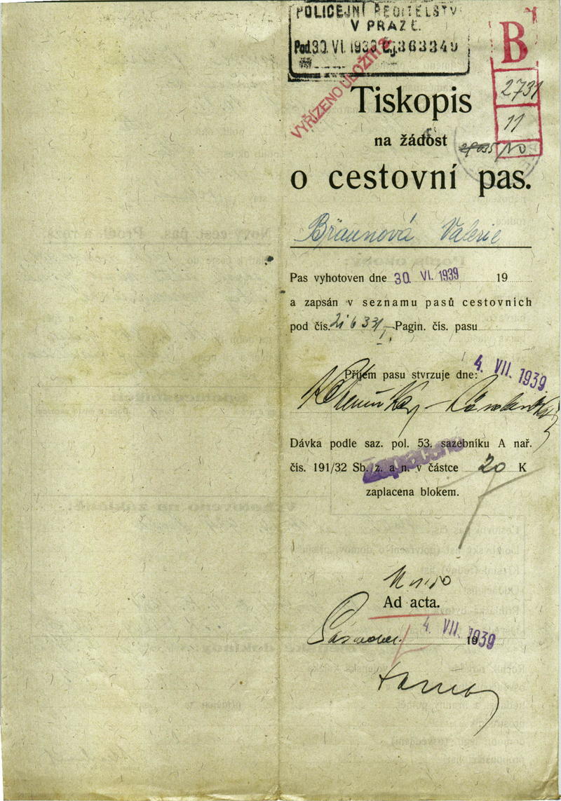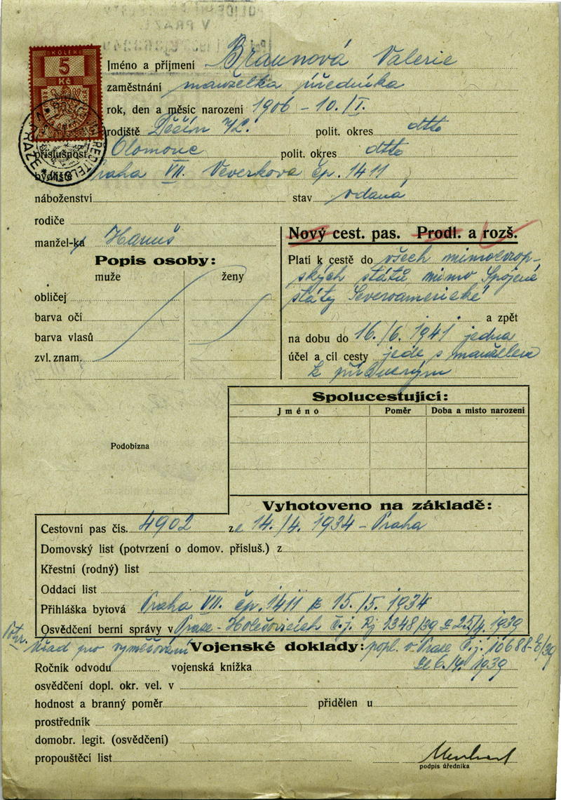 Braun Valerie: Žádost o rozšíření cestovního pasu