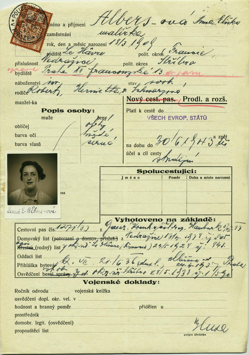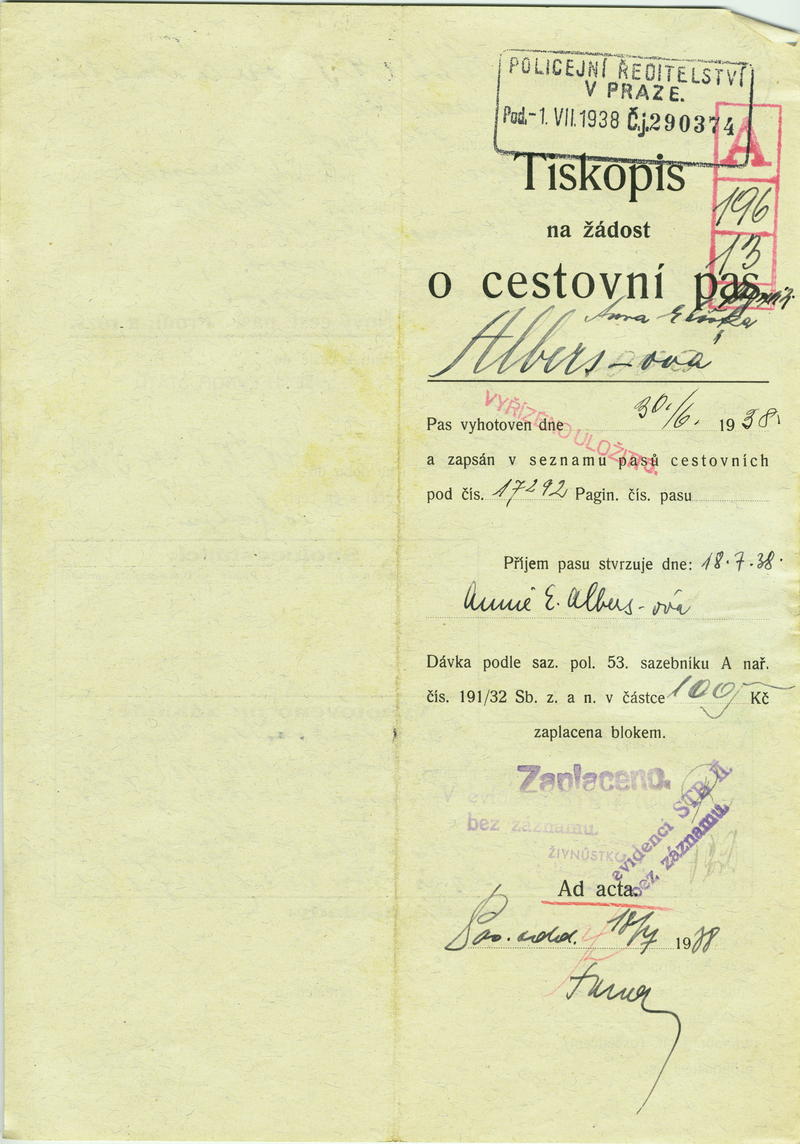 Albersová Annie: Žádost o prodloužení a rozšíření cestovního pasu