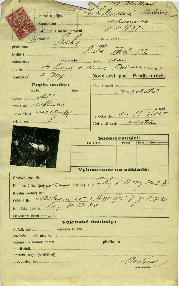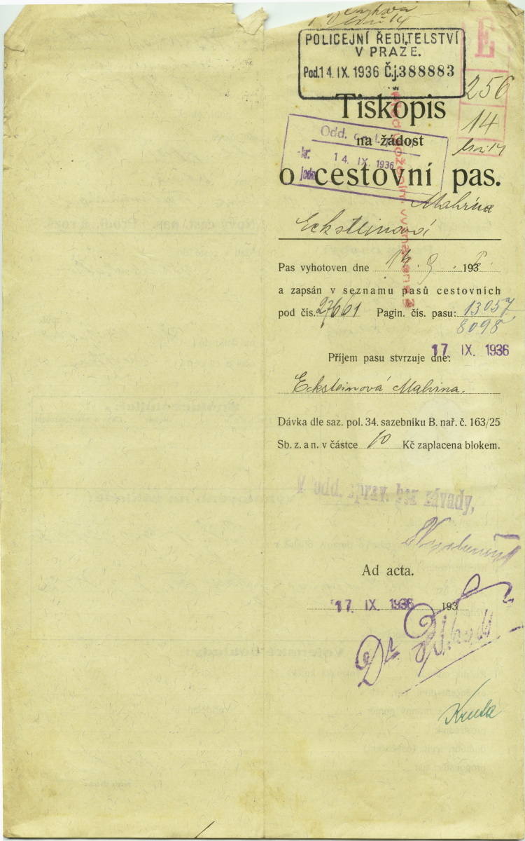 Ecksteinová Malvína: Passport application