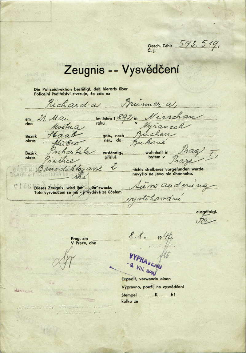 National archives Prague > Police Directorate Prague > 1931-1940 > B > Brunner Richard