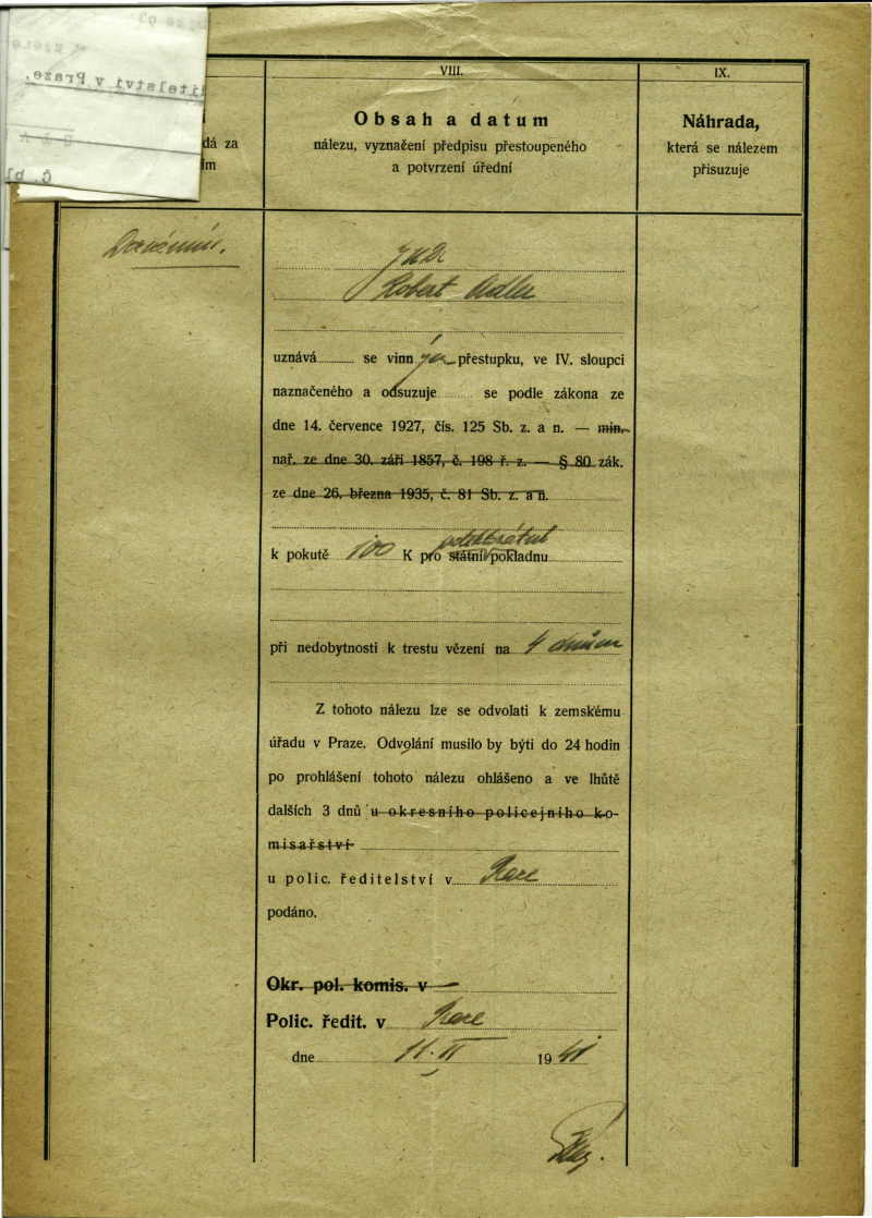 National archives Prague > Police Directorate Prague > 1941-1950 > A > Adler Robert