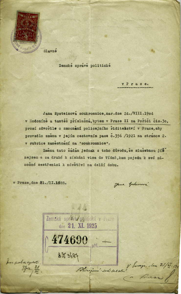 National archives Prague > Police Directorate Prague > 1931-1940 > E > Epsteinová Hana