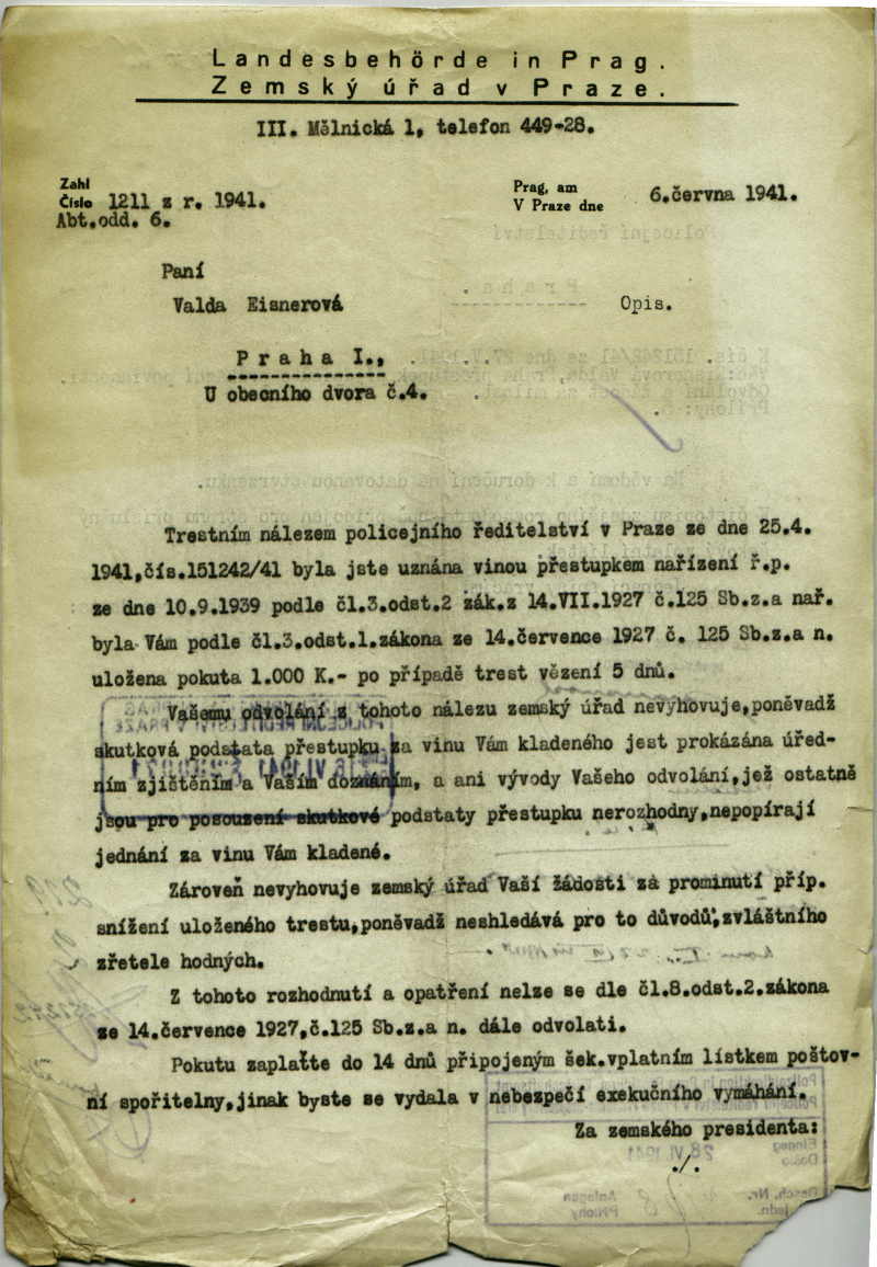 National archives Prague > Police Directorate Prague > 1941-1950 > E > Eisnerová Valentina
