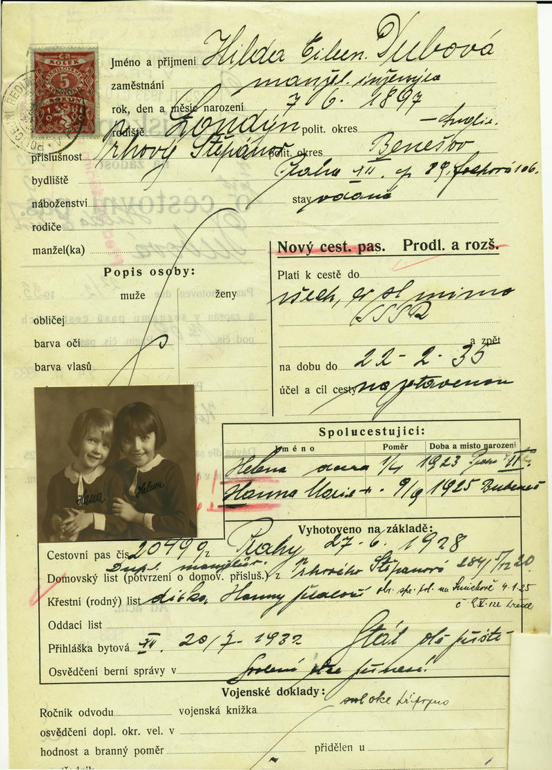 Dubova Hilde: Žádost o prodloužení a rozšíření cestovního pasu