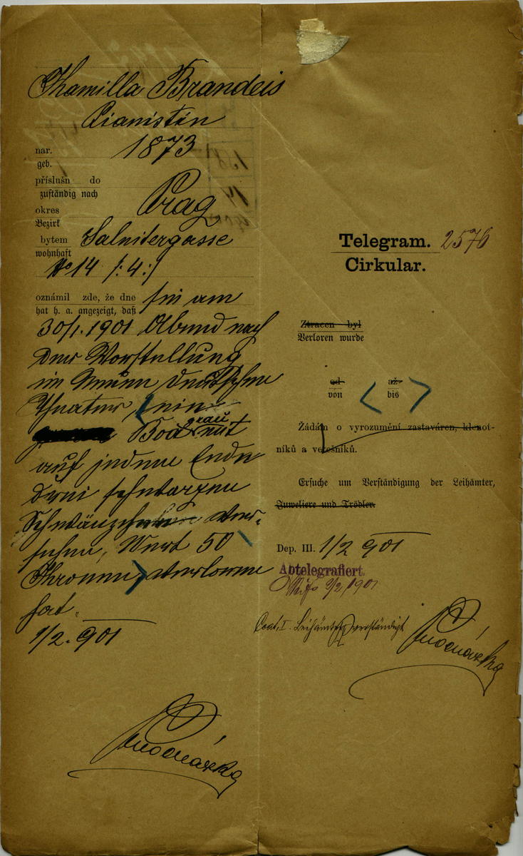Brandeisová Kamila: Oznámení o ztrátě