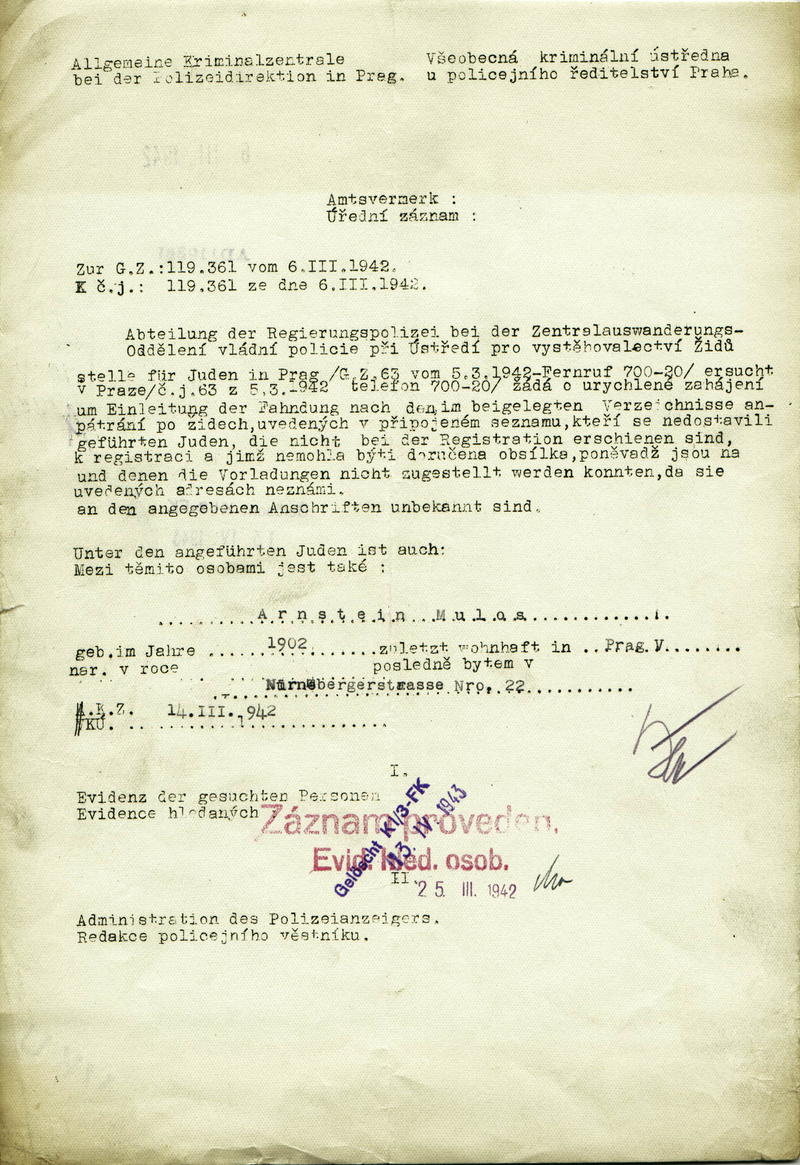 This database contains the names and fates of those who were deported from the territory of today’s Czech Republic, be it their homeland or may they have been deported to the Theresienstadt ghetto before from different european countries. Further, it contains basic information on those men, women and children, most of whom were Roma or Sinti, who died as prisoners of the so-called „Gypsy camp I“ Lety u Písku.