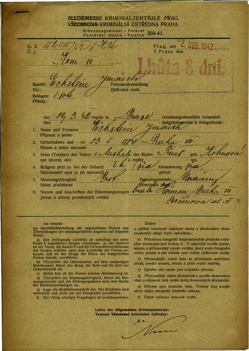 This database contains the names and fates of those who were deported from the territory of today’s Czech Republic, be it their homeland or may they have been deported to the Theresienstadt ghetto before from different european countries. Further, it contains basic information on those men, women and children, most of whom were Roma or Sinti, who died as prisoners of the so-called „Gypsy camp I“ Lety u Písku.
