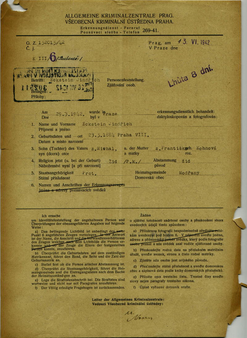 National archives Prague > Police Directorate Prague > 1941-1950 > E > Eckstein Heinrich