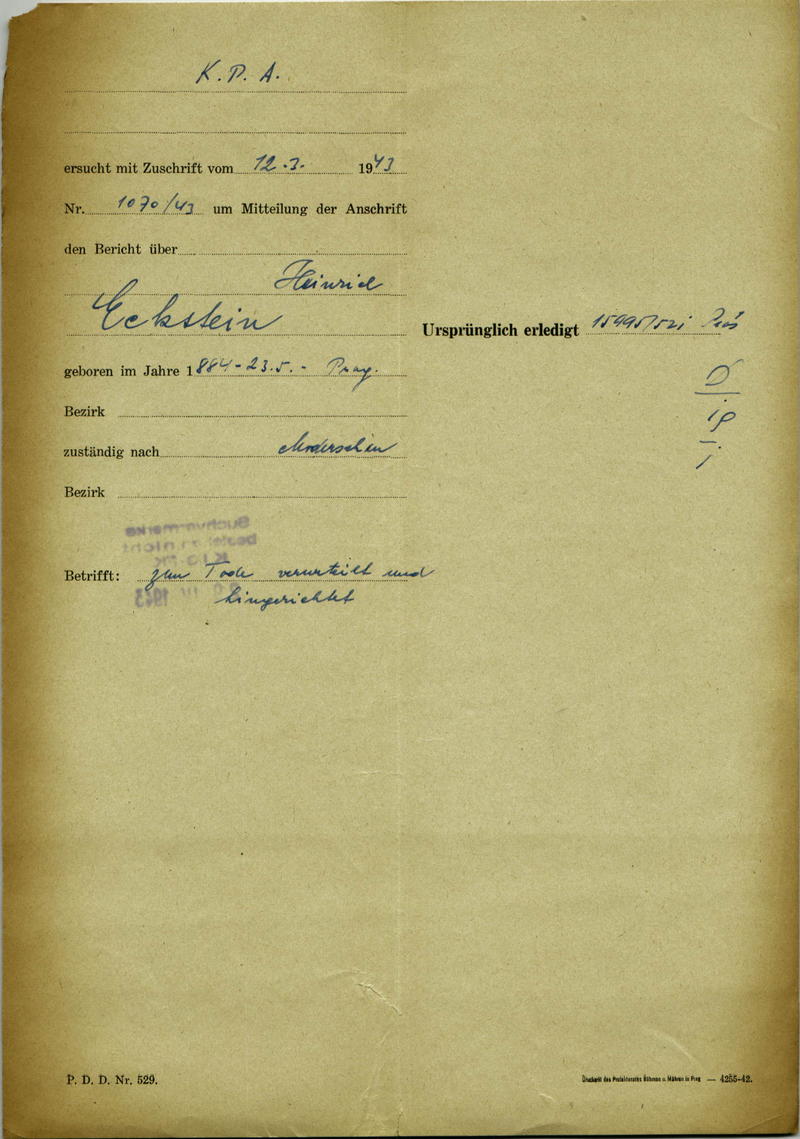This database contains the names and fates of those who were deported from the territory of today’s Czech Republic, be it their homeland or may they have been deported to the Theresienstadt ghetto before from different european countries. Further, it contains basic information on those men, women and children, most of whom were Roma or Sinti, who died as prisoners of the so-called „Gypsy camp I“ Lety u Písku.