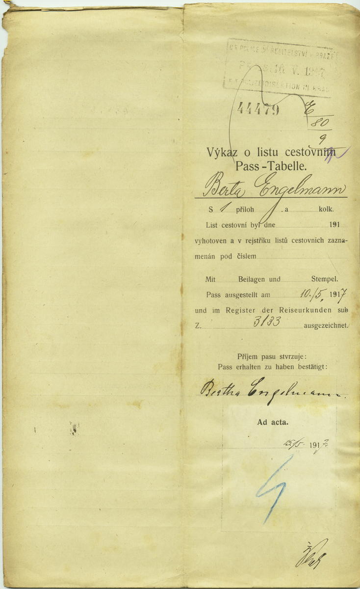 Engelmannová Berta: Passport application