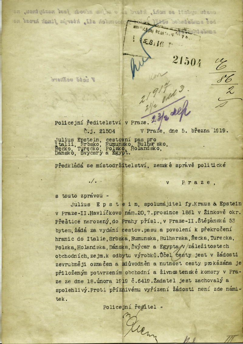 National archives Prague > Police Directorate Prague > 1931-1940 > E > Epstein Julius