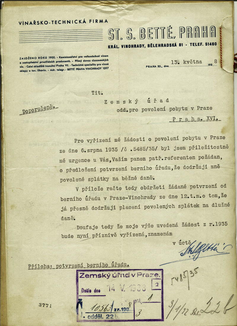 National archives Prague > Police Directorate Prague > 1931-1940 > B > Betté Stanislav