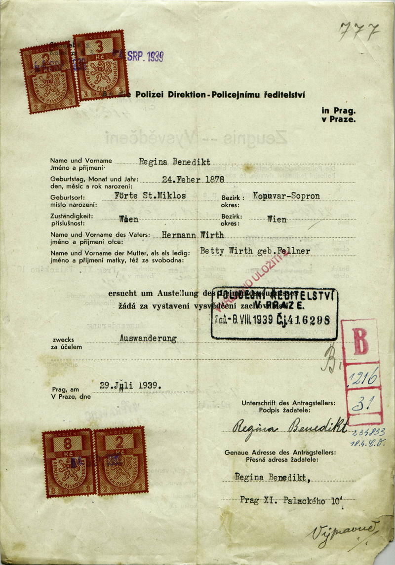 National archives Prague > Police Directorate Prague > 1931-1940 > B > Benediktová Regina