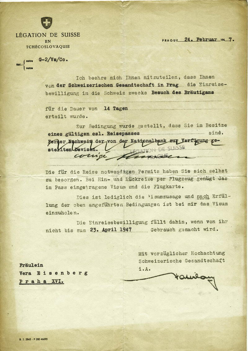 Eisenbergová Vera: Povolení k cestě do zahraničí