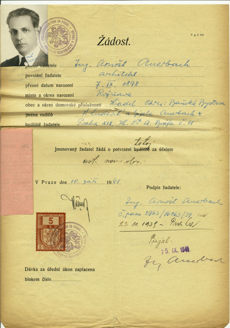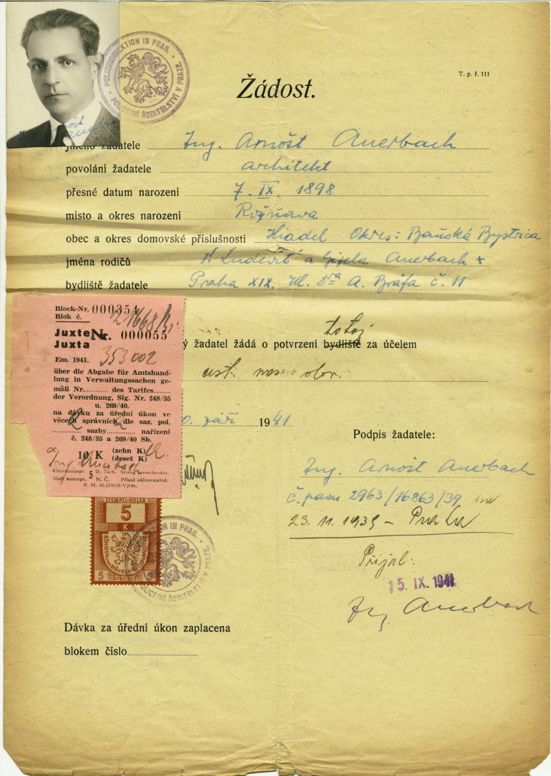 Auerbach Ernst: Žádost o potvrzení bydliště