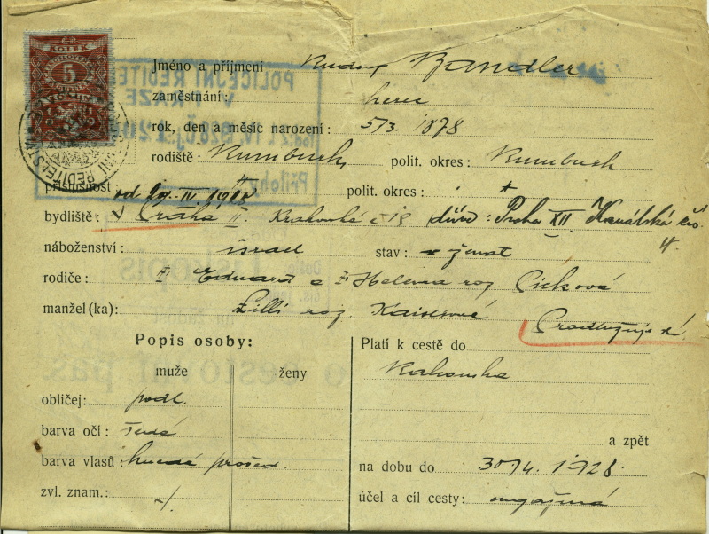 National archives Prague > Police Directorate Prague > 1931-1940 > B > Bandler Rudolf