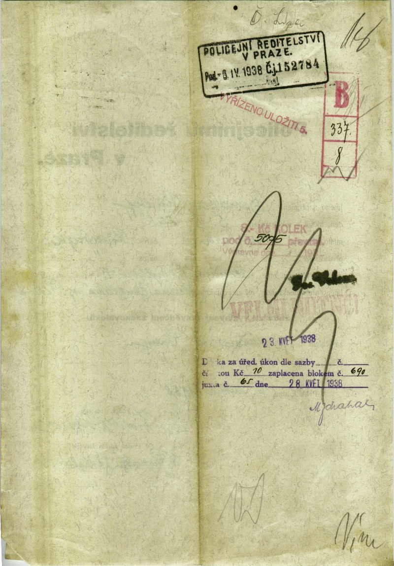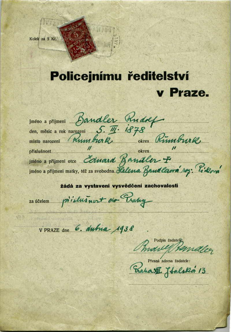National archives Prague > Police Directorate Prague > 1931-1940 > B > Bandler Rudolf