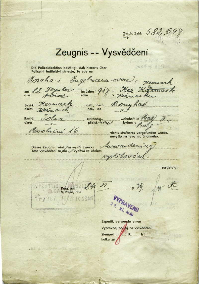Englmannová Rosalie: Vysvědčení zachovalosti