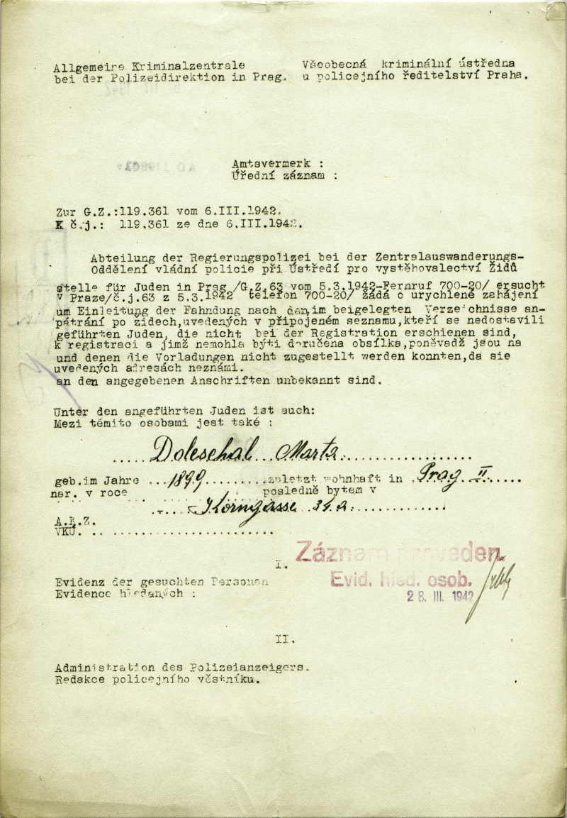 Dolleschalová Marta: Žádost o zahájení pátrání