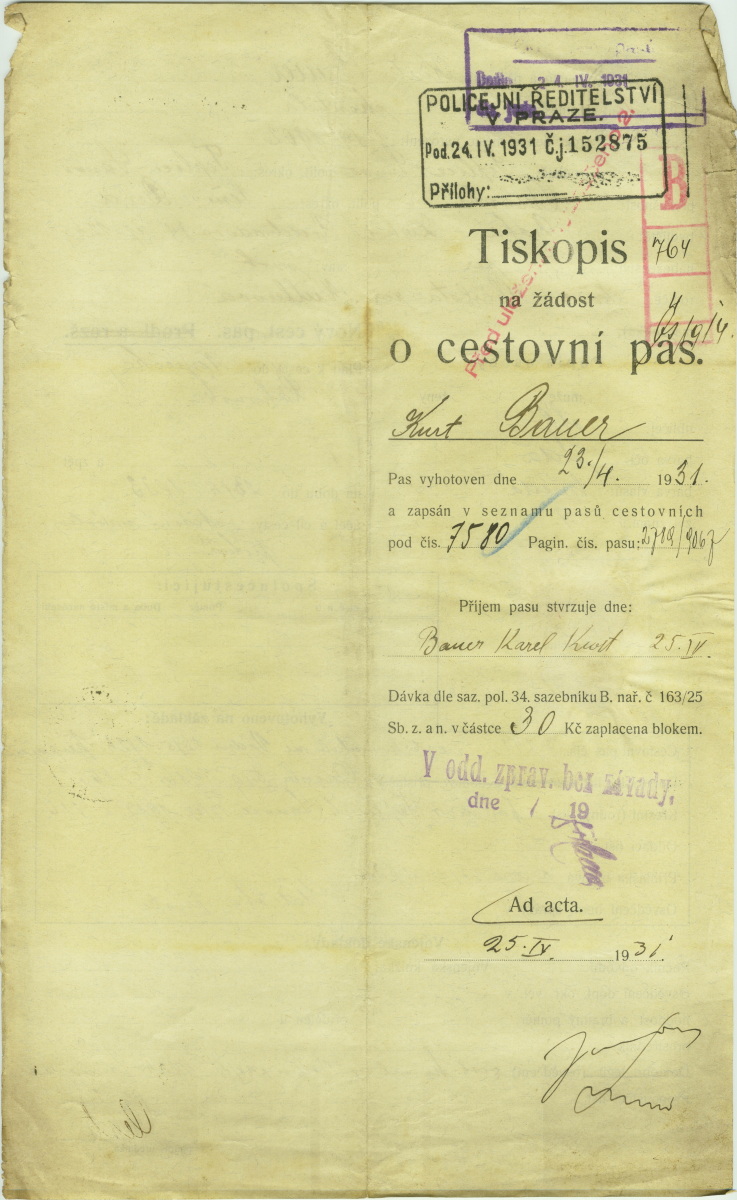 Bauer Kurt Jaroslaus: Passport application