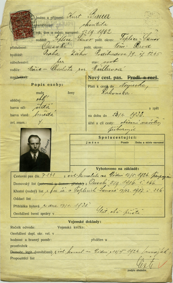 National archives Prague > Police Directorate Prague > 1931-1940 > B > Bauer Kurt Jaroslaus