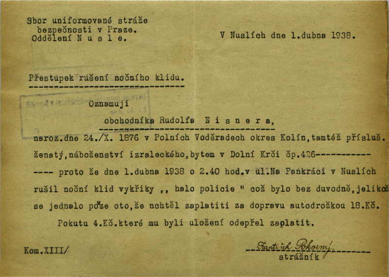 Eisner Rudolf: Zpráva o přestupku